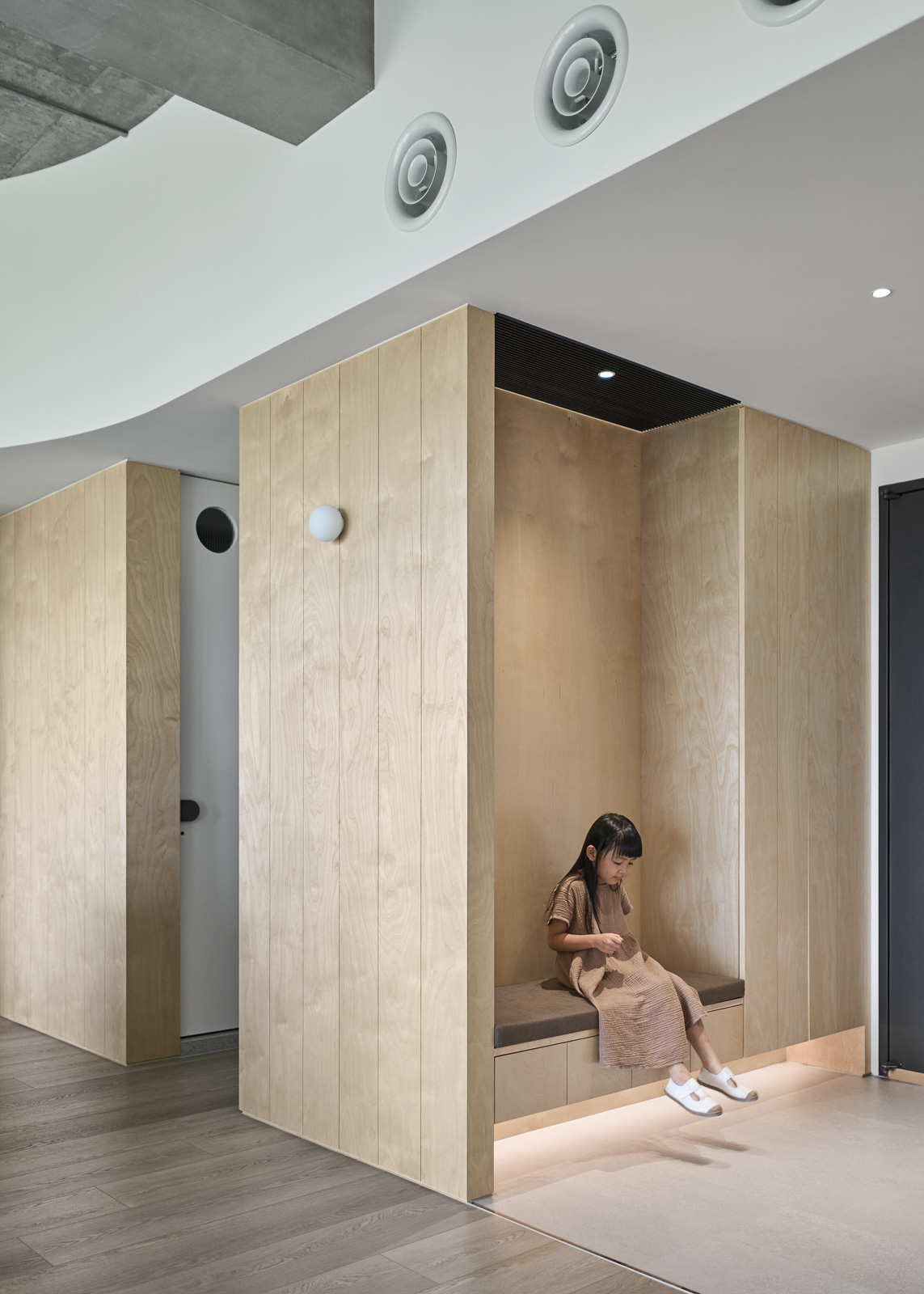 The view of nature beyond the window serves as a living backdrop, gently shaping the patterns of everyday life. Away from the hustle and bustle of the city, the blue sky and swaying rice fields turn into the canvas of a daughter’s free and joyful growth, shaping a simple and gentle life for the family. The home holds their daily life and the possibilities of the future, remaining a constant companion through every stage of growth.
