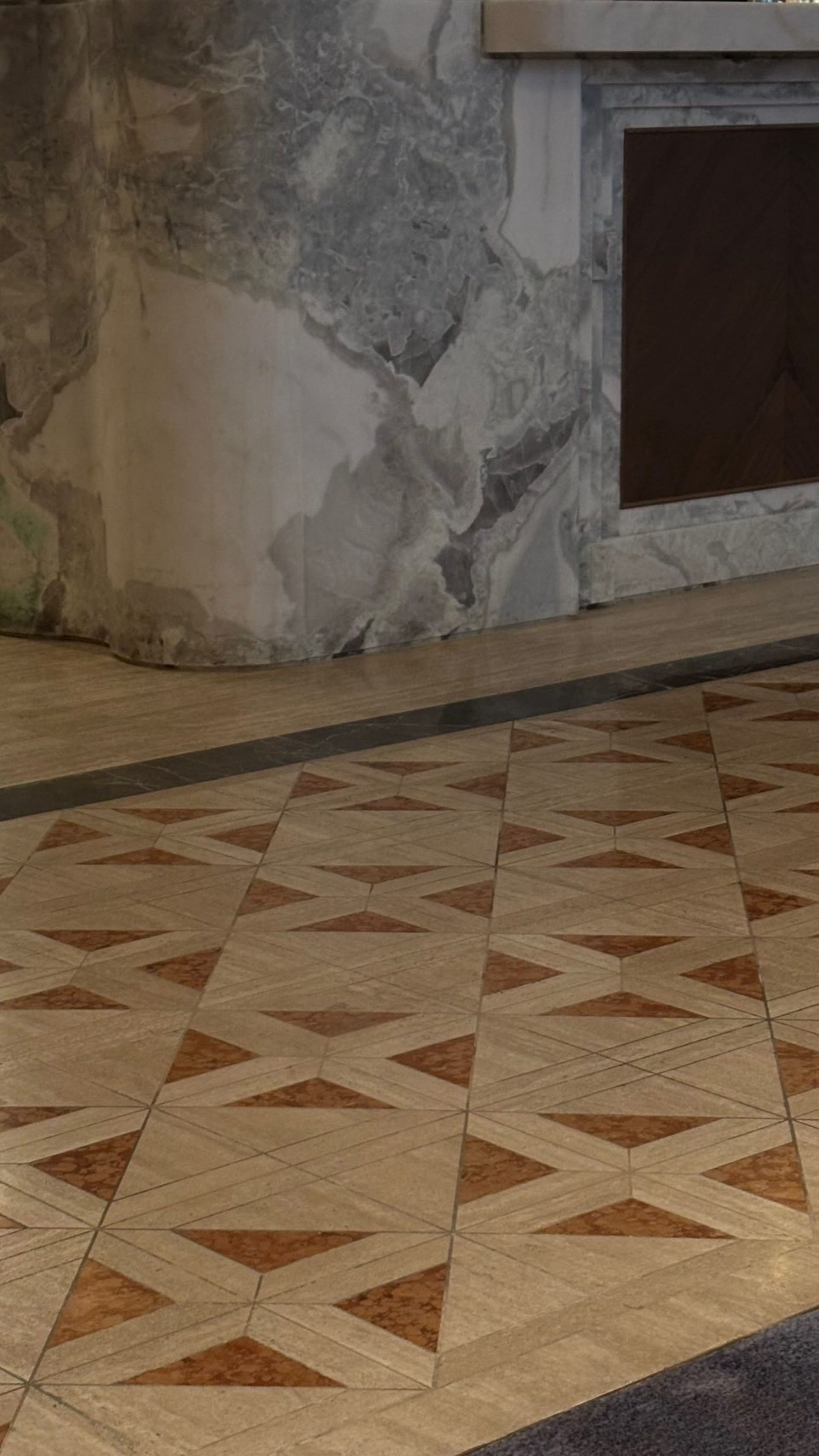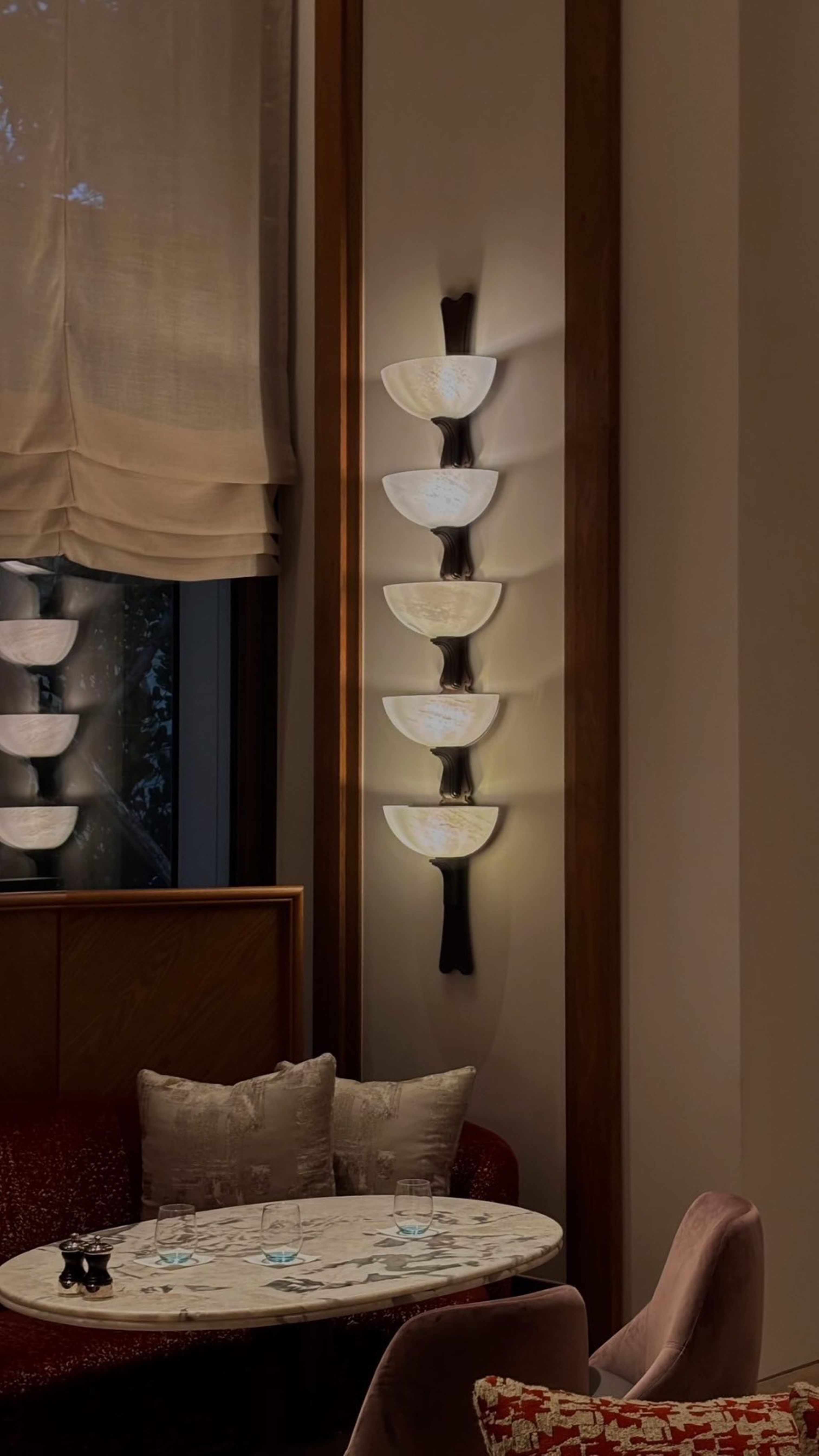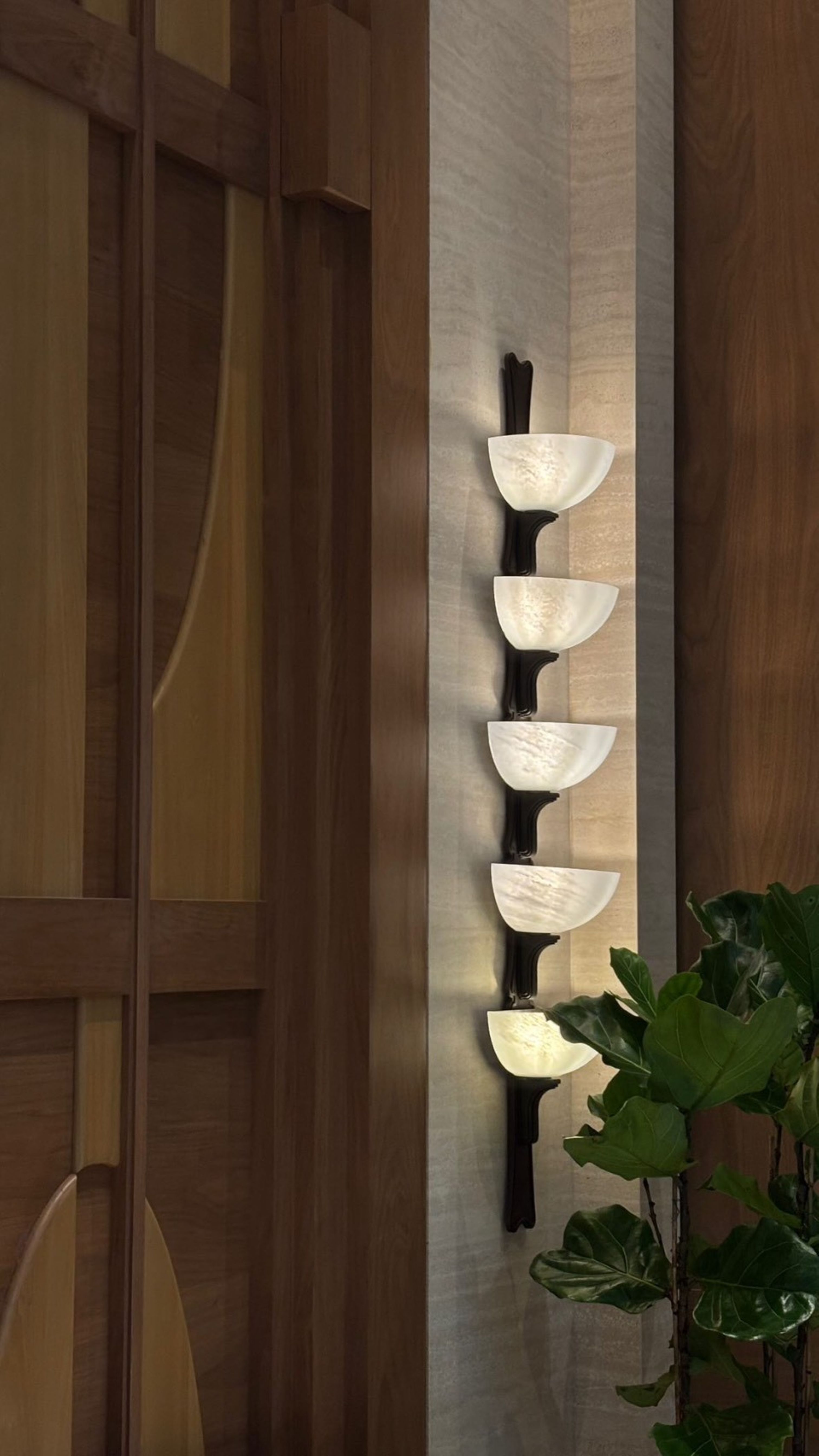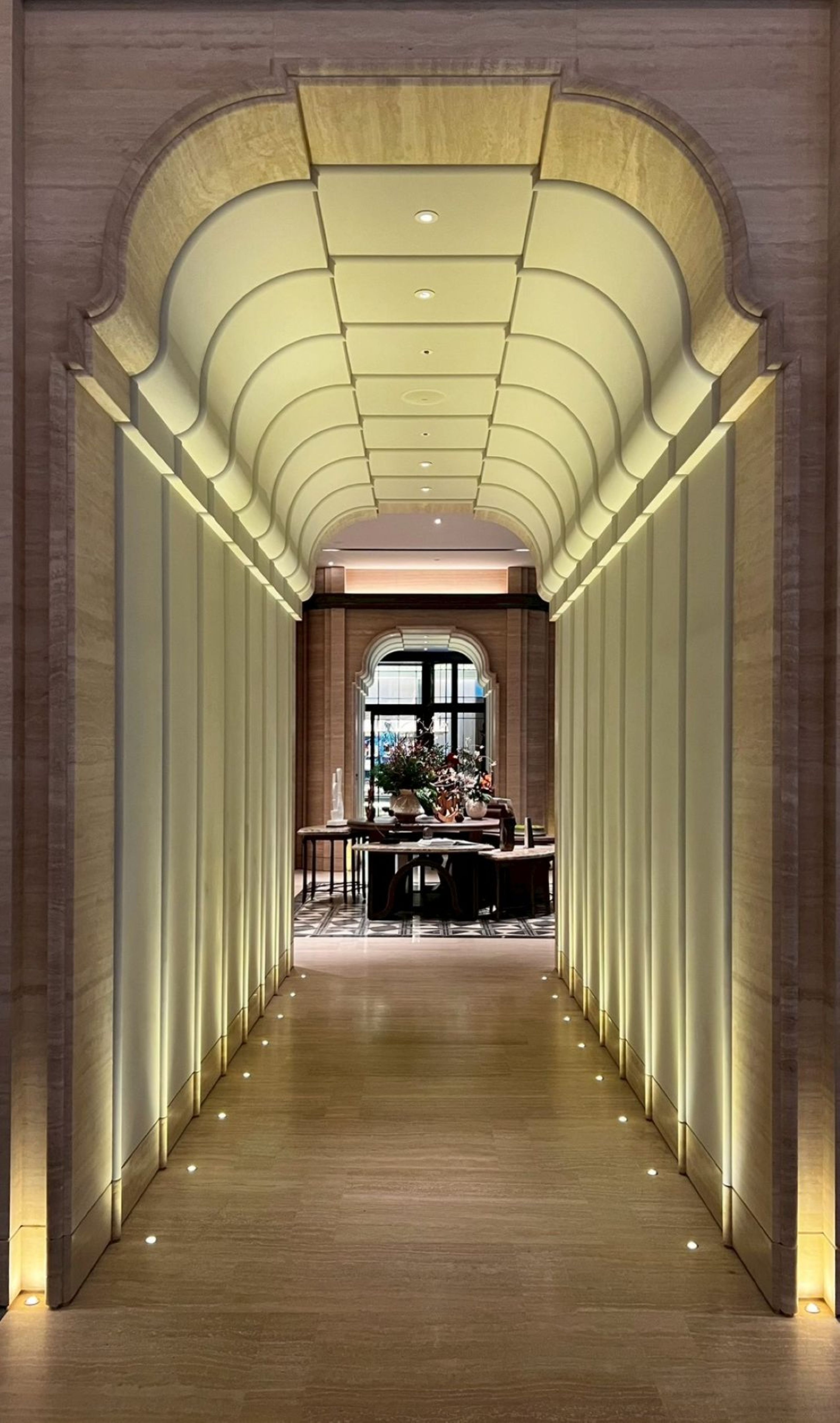 空間由 André Fu 設計,以木質、石材和金屬為主要語彙,透過線條層次堆疊,融合出東方氣質與現代奢華的調性。